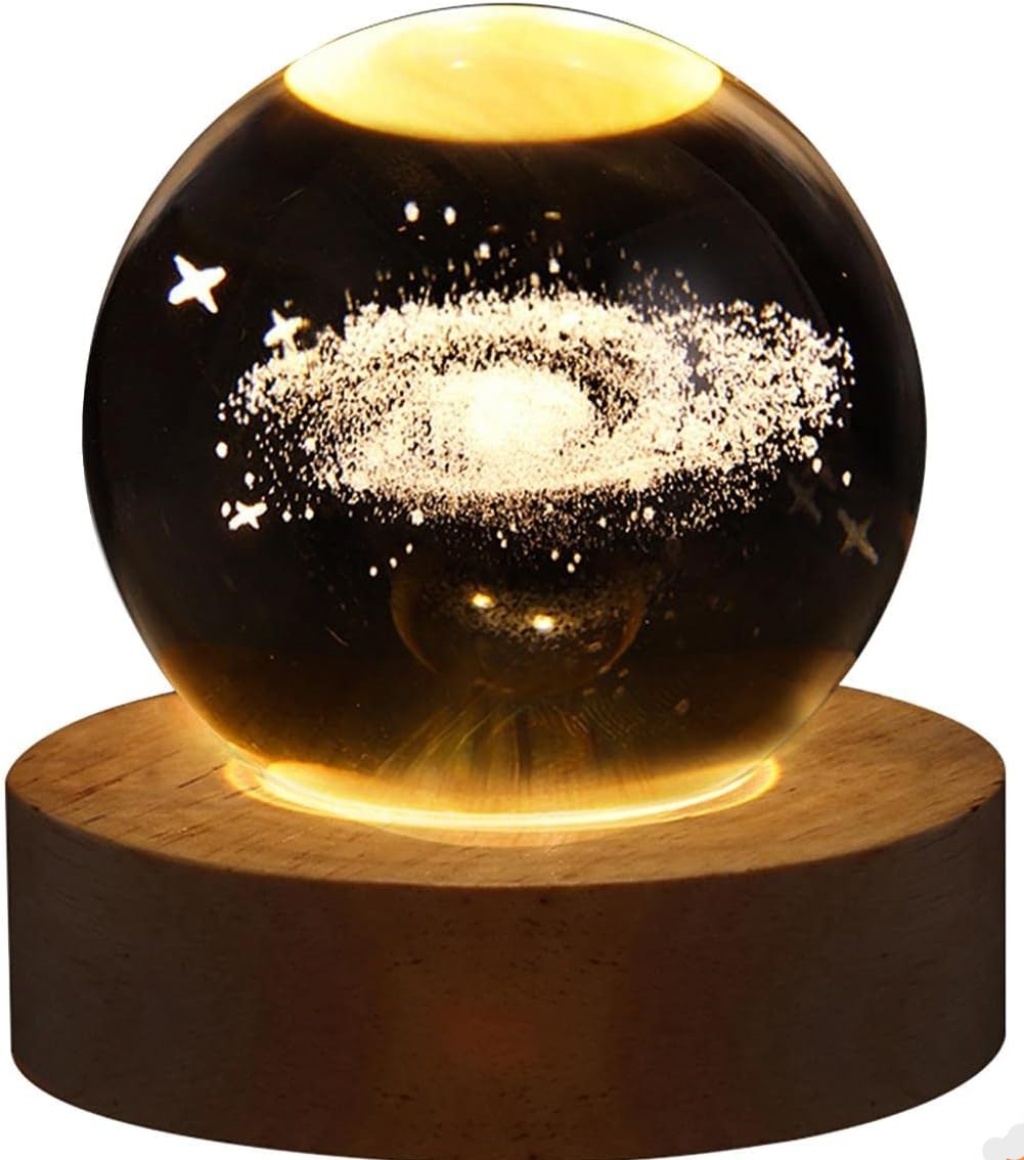 Dekoratif Samanyolu Tasarımlı Ahşap altlıklı Işıklı Cam Küre Cam:6cm Ahşap:2cm